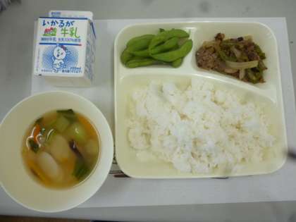 9月25日の給食は、プルコギ、トック、枝豆でした。25日は韓国料理でした。お肉がたっぷり入っていておいしかったです。