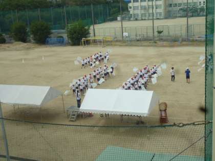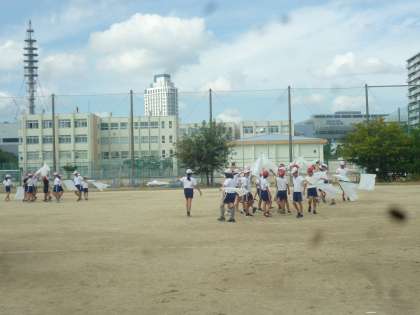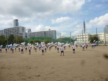5・6年生は団体演技で旗を使います。ずいぶん大きく力強く振れるようになってきました。