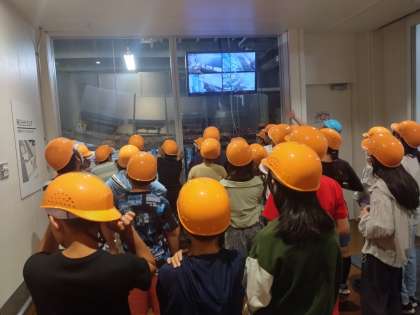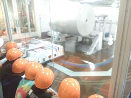 大きな印刷用のロールやそれを輪転機に運ぶロボットなどを興味深く見学していました。
