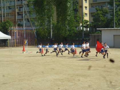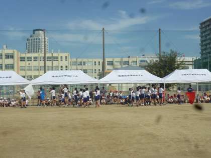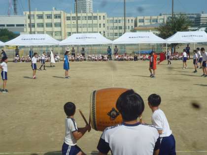 応援団の全体練習もしていきました。応援団の大きな掛け声に合わせて、みんなも大きな声を出して応援しました。