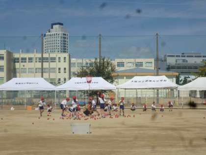 いよいよ運動会の練習が最終になりました。各学年、最終確認しながら練習をしていきました。玉入れは1回戦は2年生が、2回戦は1年生が、3回戦は1年生2年生が合同で競技します。音楽に合わせて踊り、音楽が止まったら玉入れを開始します。