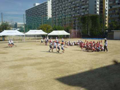 3年生と4年生も最終練習です。ダンスはしっかりと腕が伸びて自信いっぱいです。団体競技はリームの息を合わせようとよく頑張っていました。