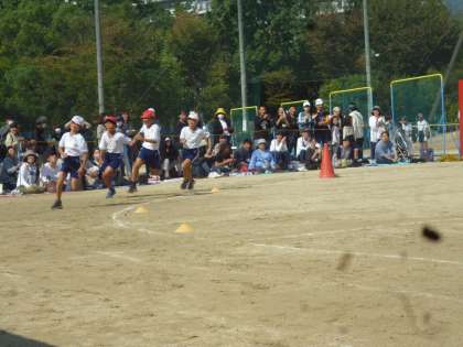 運動会の様子を再開します。3年生の徒競走「ラン!ラン!!ラン!!!」です。運動会で初めてトラックを走りました。練習でカーブの走りがうまくなっていました。