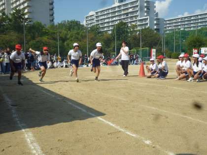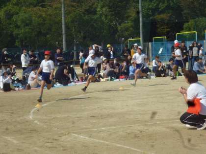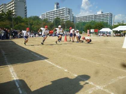 運動会の様子の再開です。5年生の徒競走「GO GO 5年生」です。トラックを一周します。みんな最後まで力いっぱい走り切りました。