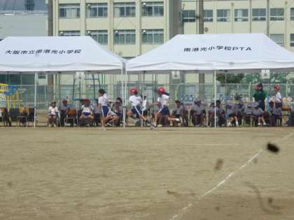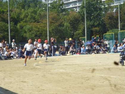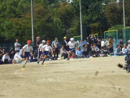 次は4年生の徒競走「4年、走る」です。トラックを半周以上走ります。最後までしっかり走る力強い頑張りに大きな応援と拍手をもらいました。