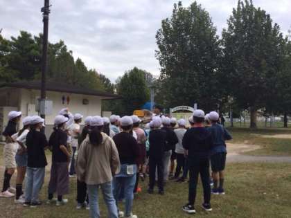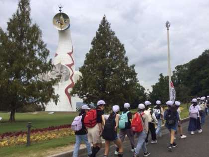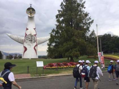 万博記念公園に入りました。太陽の塔を横に見ながら,アスレチックの場所に到着。今から遊びます。