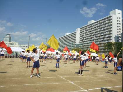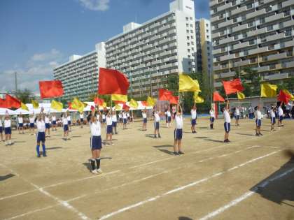 運動場に「ブン、ブン」という旗が風を切る音が響きました。大変見ごたえのある演技でフィナーレを飾ってくれました。6年生も小学校最後の運動会らしく堂々とした演技を披露しました。