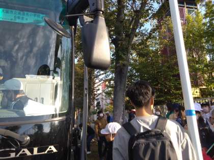 10月23日、6年生は修学旅行に行きました。44名全員参加で出発式を行いました。たくさんの保護者の方々に見送っていただきました。早朝からありがとうございました。