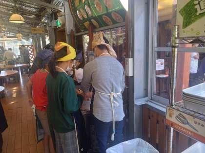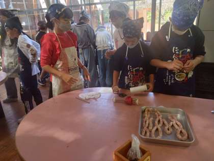 みんなご機嫌でウィンナーを見ています。後片付けをして作業の終了です。