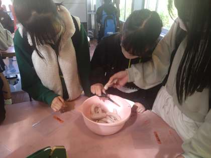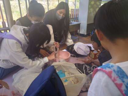 できあがったウィンナーをボイルしてもらい、はさみで切って持ち帰り用の袋に入れます。