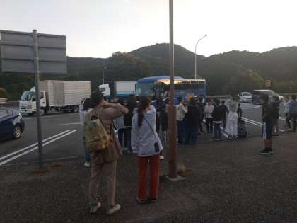 多気PAで休憩し、ホテルに向かっています。車内はクイズ大会で楽しんでいます。