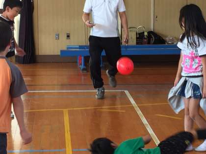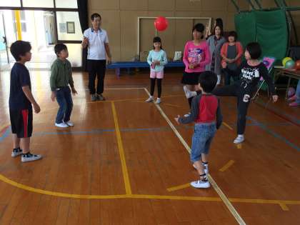 風船は思ったところには飛びません。しばらくやっていたら、コツをつかんで長く続けることができるようになりました。体育厚生委員会によるゲームでした。