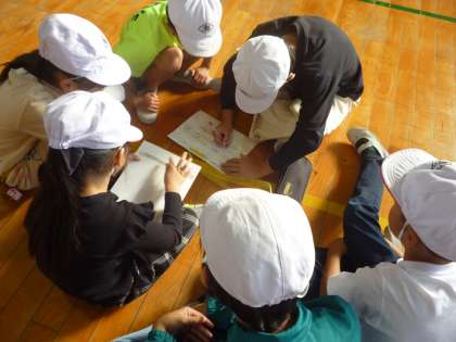 11月11日は「光ハイク」です。今日は当日一緒に廻るたて割りグループで、どの店をどの順番で廻るかを話し合いました。みんなワクワクしながら意見を言っていました。地域・PTAの方々、準備から当日の運営まで大変お世話になります。ありがとうございます。