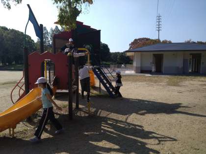 4年生は遠足で堺市の大泉緑地に行きました。到着して遊具などで活動を始めました。
