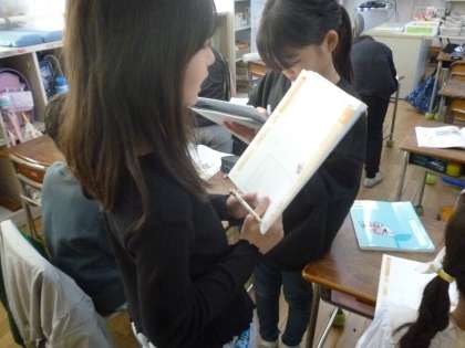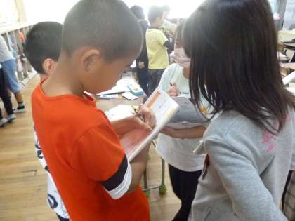 3年生は道徳の学習で「バスの席をゆずる」ことについて考えました。自分の考えを道徳ノーとに書き、友達とノートを見せ合って意見交流をして学習を深めました