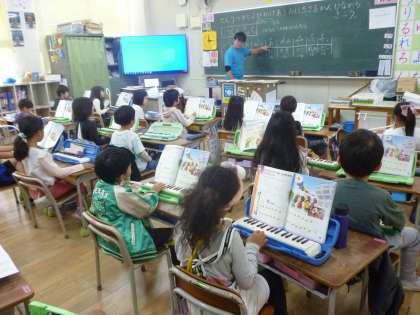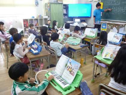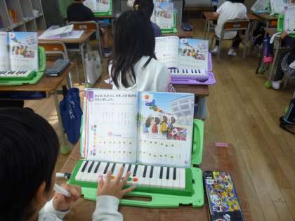 1年生は鍵盤ハーモニカの練習を続けています。一つ一つの音を確認しながら、しっかりと演奏していました。