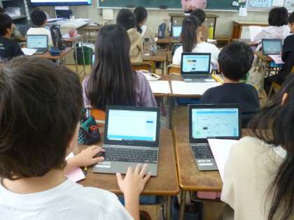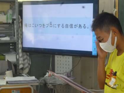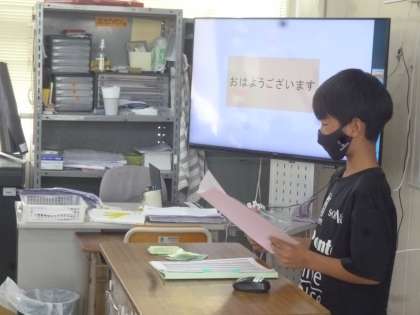 5年生は「伝えたい心に残る言葉」の発表をしました。「ありがとう」「がんばる」など自分の好きな言葉について説明する文章を書き、一人一人が発表していきました。