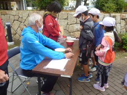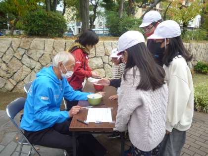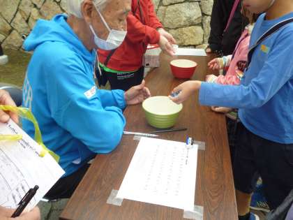 続いて「青少年指導員&福祉委員」様の「さいころころがし」です。2つのサイコロを器の中に投げて、同じ目がそろうと点が入ります。なかなかそろうことがなく、そろうと歓声が上がりました。