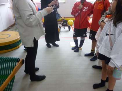 続いて「PTA地域体育委員会」様の「テレパシーゲーム」です。担当のPTA様から3つのヒントが出され、それに当てはまる本校の職員を当てるゲームです。すぐに当たる職員もあれば、なかなか当たらない職員もあり、大人も子どもも楽しめる内容でした。