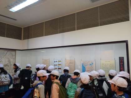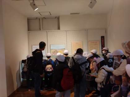 大和川のつけかえについて、当時の工事道具を使って詳しく説明していただきました。その後、館内の見学です。