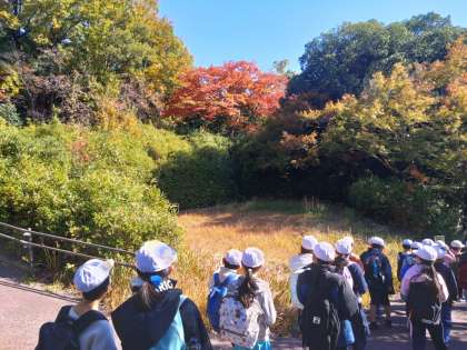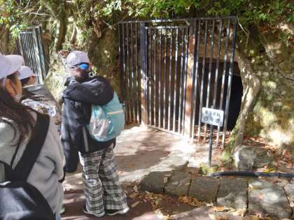横穴古墳を身近に見ることができました。紅葉がきれいな道を通って大和川にむかいます。