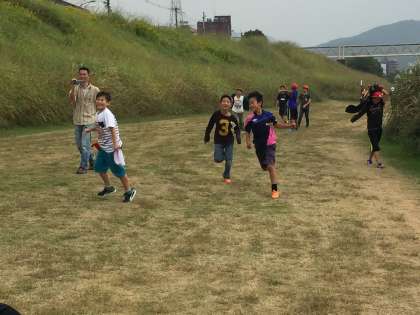 大和川の堤防に降りて昼食をとりました。そして、思い切り遊ぶ時間を作りました。子どもたちは大満足の様子でした。