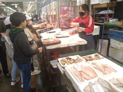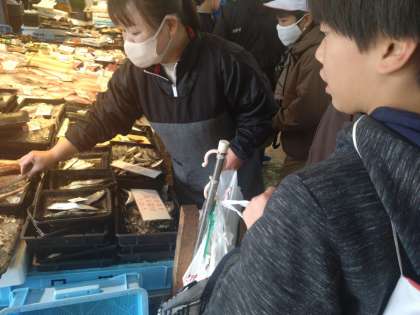 漁港に着き、さっそく魚の買い物です。