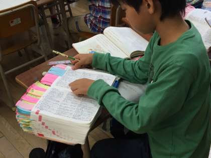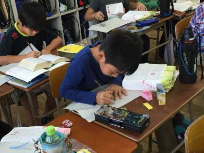 自習中の4年生です。辞書引き学習をしていました。ざわついた雰囲気では学習は進みません。集中している子どもたちの姿は、とても清々しいです。