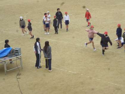 はじめの体操から始まり、サッカーのドリブルしながら、輪投げしながらなど、いろんな道を走る競技や、玉入れや、小学校最後のリレーをしました。みんな、素敵な笑顔で楽しみました。