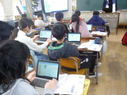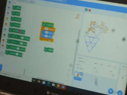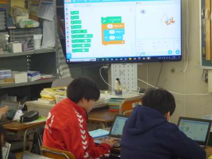 5年生は算数でプログラミング学習をしました。テーマは「多角形を作図しよう」です。タブレット操作しながら、今日は三角形を作図する手順をプログラミングしていきました。