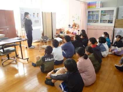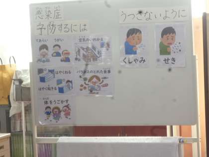 6年生は身体測定の時間に感染症対策の話を聞きました。健康維持のためどのようにしていけばよいか考えていきました。
