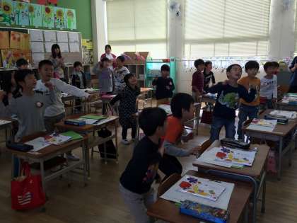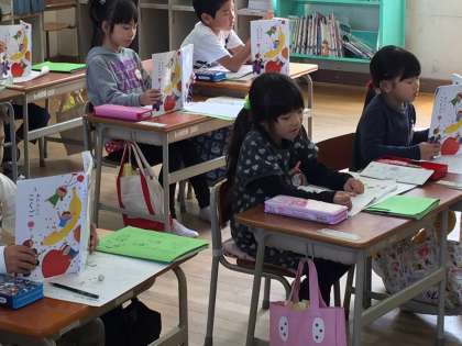 1年1組の「サラダでげんき」の学習です。サラダに入れるものを考えて、お手紙を書きました。どの子もしっかりと書いて、発表していました。