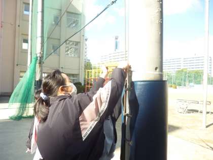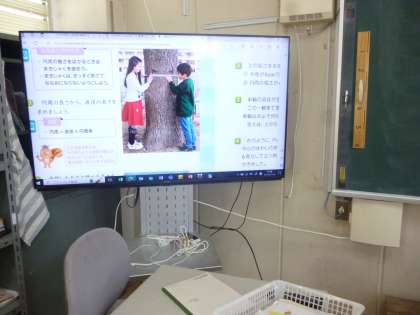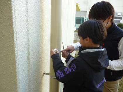 5年生は、算数で、身近なもので円の形のしたものを探し、円周の長さを図って直径の長さを予想する学習をしました。子どもたちは、校内をグループごとに散策して、円や円柱のものを探して、円周の長さを図っていました。寒い日でしたが、熱心に学習に取り組み、円周率を使って直径の長さを計算できました。