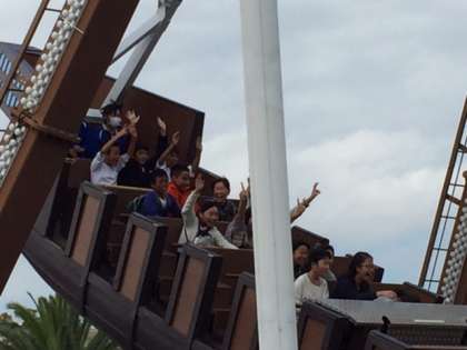実はこれが一番こわいのです。船の舳先に乗るとほぼまっすぐに落ちるような感じになります。ピレネーとはちがう絶叫体験でした。