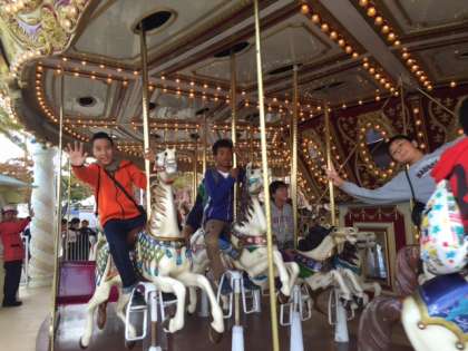 メリーゴーランドはいくつになっても楽しいものです。絶叫マシンのかげで、意外と人気があります。