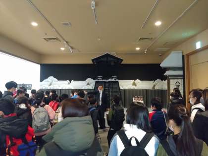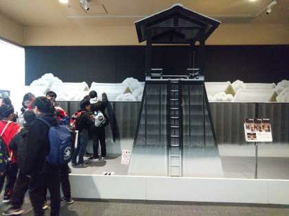 まずは資料の展示を見学しました。建物のセットや人形など、しっかり見ていました。