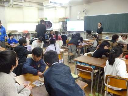 4年生は大阪市水道局の方々に水について調べる実験を教えていただきました。大和川の水がきれいかどうか調べる実験です。試薬を使って調べると大和川の水がきれいであることがよくわかりました。楽しい実験で理科の学習になりました。