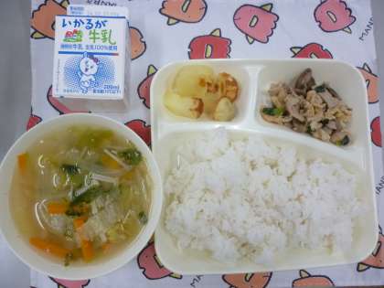 2月最初の球速は「豚肉とほしずいきのみそ煮」「すまし汁」「あげ焼きじゃが」です。あげ焼きじゃが」はジャガイモの風味がよく生かされていました。