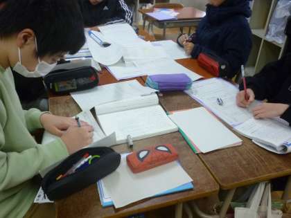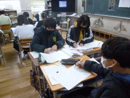 6年生は国語で「プロフェッショナルたち」という仕事で大きな成果を上げた人の話を読みとっています。自分の考えを書き、グループで互いの考えを交流し合いました。