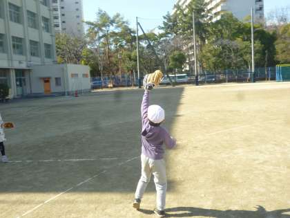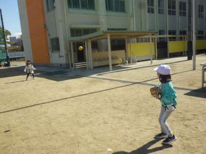 メジャーリーガーの大谷選手から寄贈されたグローブを使い始めました。これまではクラス順に触ったり見たりしていましたが、今日から1年生から順に使っていきました。子どもたちは笑顔でグローブを使ってキャッチボールをしていました。