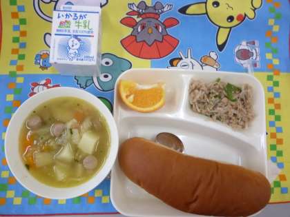 2月8日の給食は「ポトフ」「ツナと野菜のソテー」で、デザートに伊予かんが出ました。ポトフは具だくさんで食べ応えがありました。