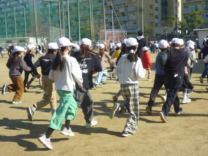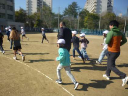 運動場をみんなで走る「ランラン週間」が始まりました。コロナ禍以来、4年ぶりです。今日は比較的あたたかく、元気に運動場を走っていました。