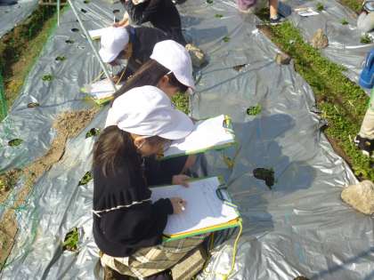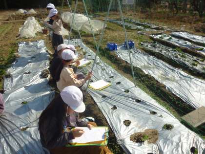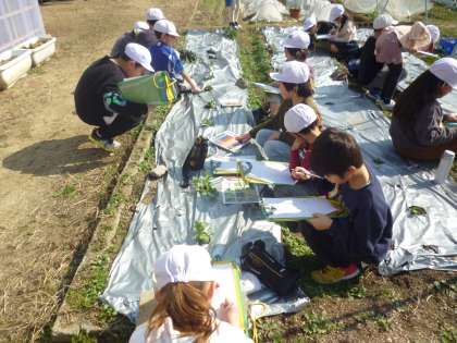 2年生は学習園で「エンドウ豆」の観察をしました。春が近くなって葉も茂るようになってきました。しっかり見て絵と文でまとめていきました。