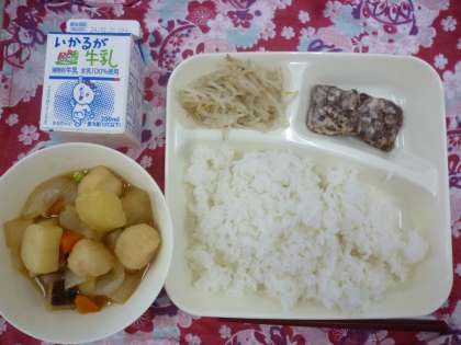 2月15日の給食は、くじらのたつたあげ、まる天と野菜の煮もの、もやしのしょうがづけです。日本では昔からくじらを使ったたくさんの料理が食べられてきました。肉だけでなく内臓や尾びれまで工夫して使うことができるので、「くじらは、すてるところがない」と言われています。たつた揚げはカリッとあがって、中はふんわり美味しかったです。