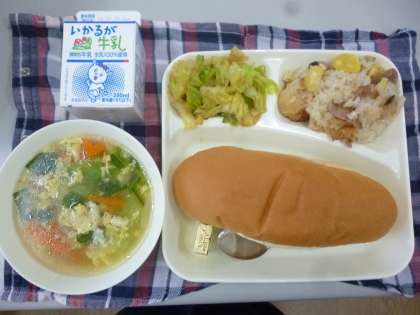 2月16日の給食は、中華おこわ、卵スープ、キャベツのオイスターソースいためでした。中華おこわには、たくさんの栗が入っていてモチモチでおいしかったです。冬のキャベツは甘くてオイスターソースとの取り合わせも抜群でした。