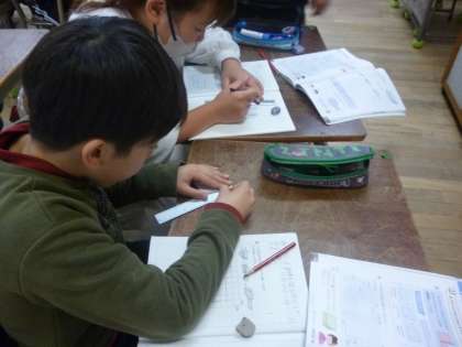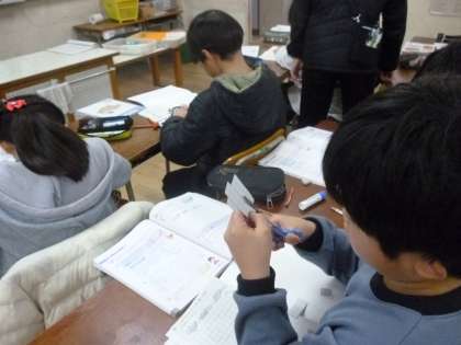 4年生は算数で立体について学習しています。今日は展開図を考えて書き、切り取って直方体を完成させました。