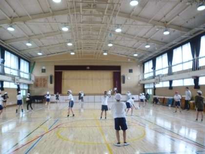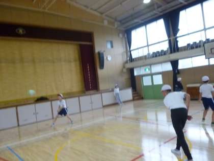5年生は体育で初めてバレーボールをしました。レシーブから練習をはじめ、しっかりボールを追いかけていました。