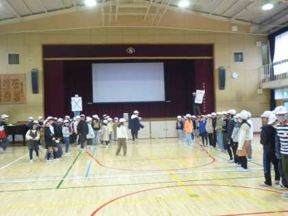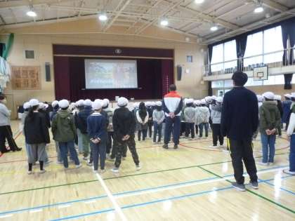 集会の後は1年生から5年生で「卒業を祝う会」の歌の練習をしました。