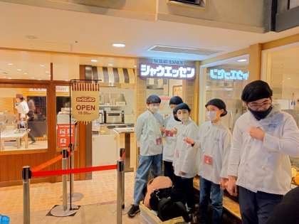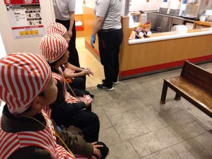 体験が始まりました。食事作りは身じたくをして待ちます。