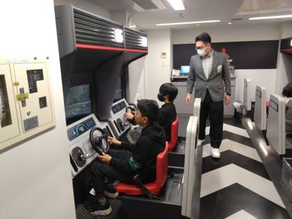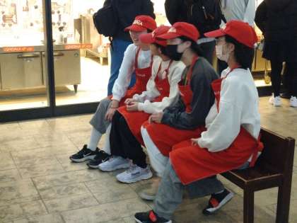 自動車運転体験です。ピザ作りで制服に着替えて待機です。